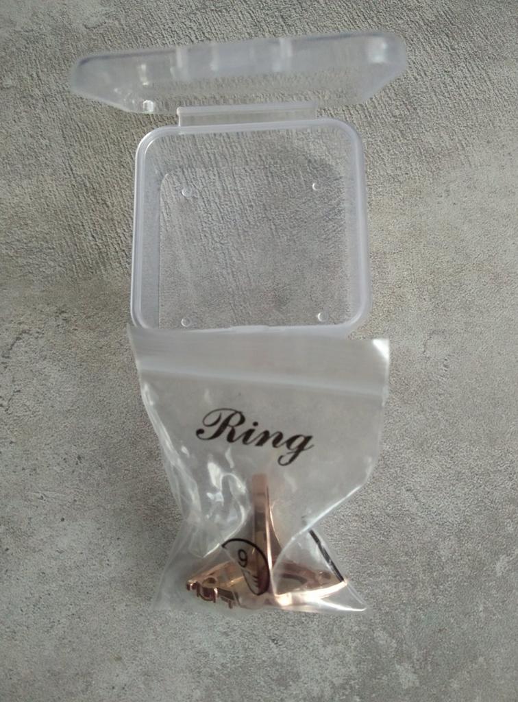 Порадовало то, что кроме пакета кольцо упаковано ещё и в коробочку. Очень красивое, на фото рядом золотое кольцо. На первый взгляд не отличить. Посмотрю, как долго будет носиться. Камешек закреплён хорошо, не приклеенный, не выпадет.