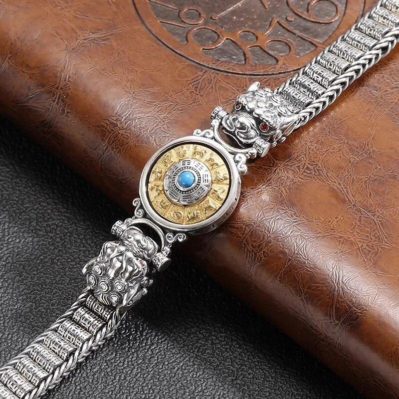 HX серебряный цвет, китайский шикарный браслет Bagua Pixiu Om Mani Padme Hum, ретро и старомодные модные гегемонистские аксессуары