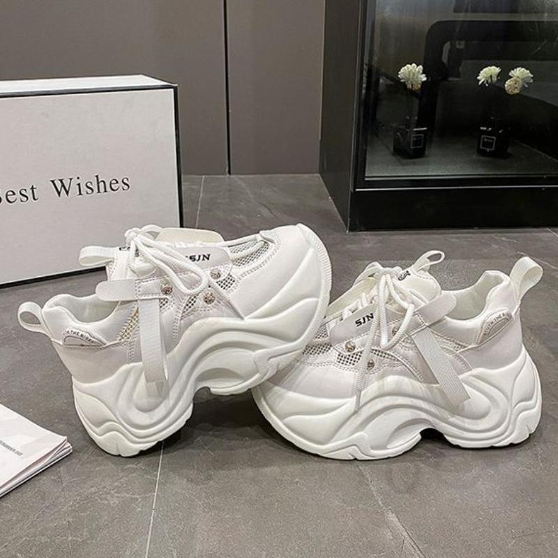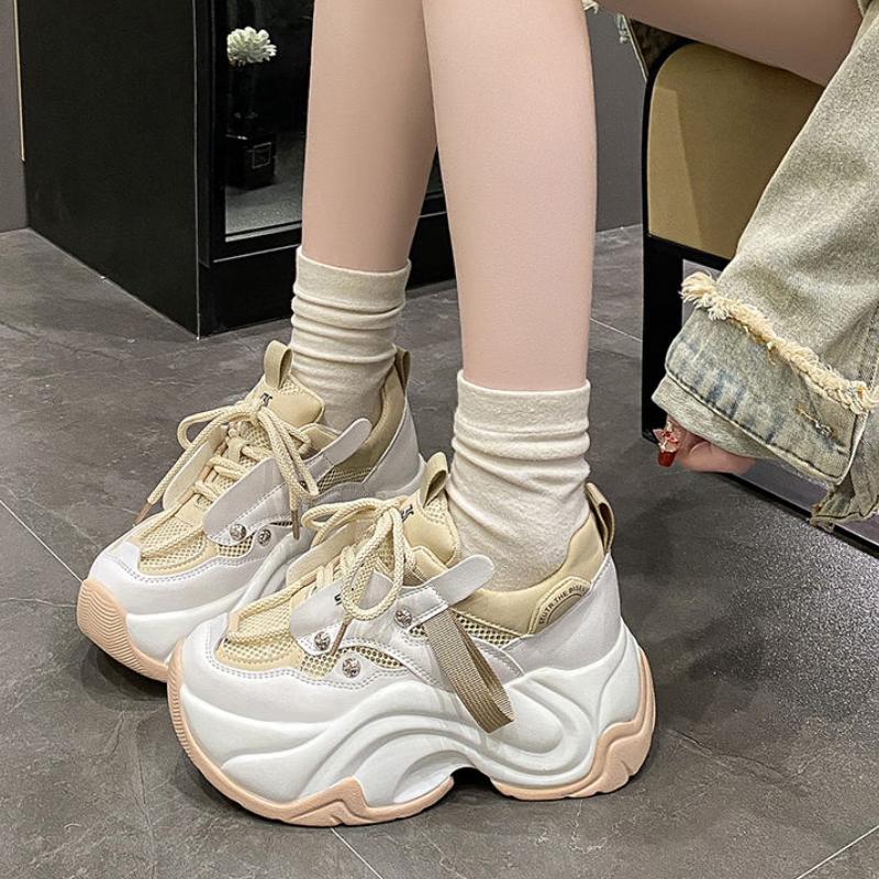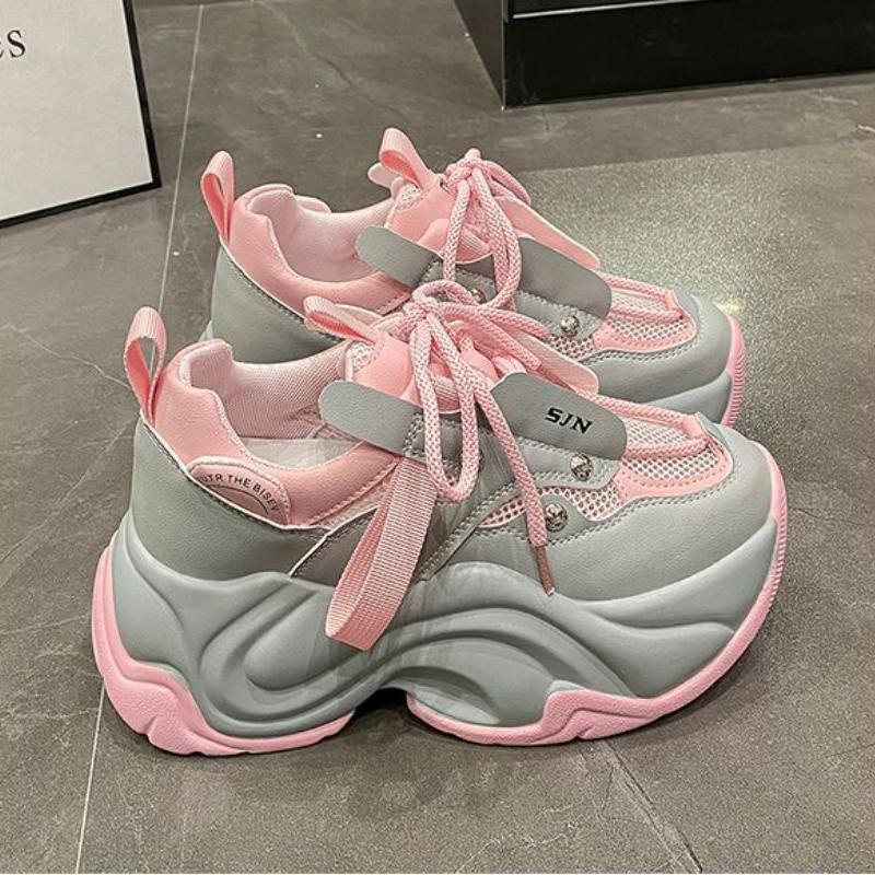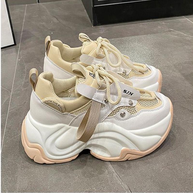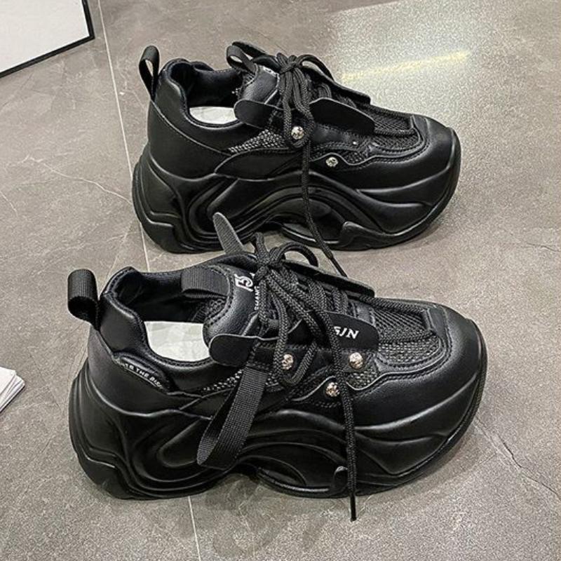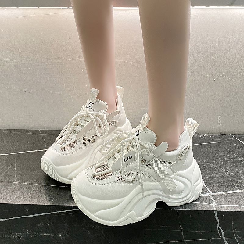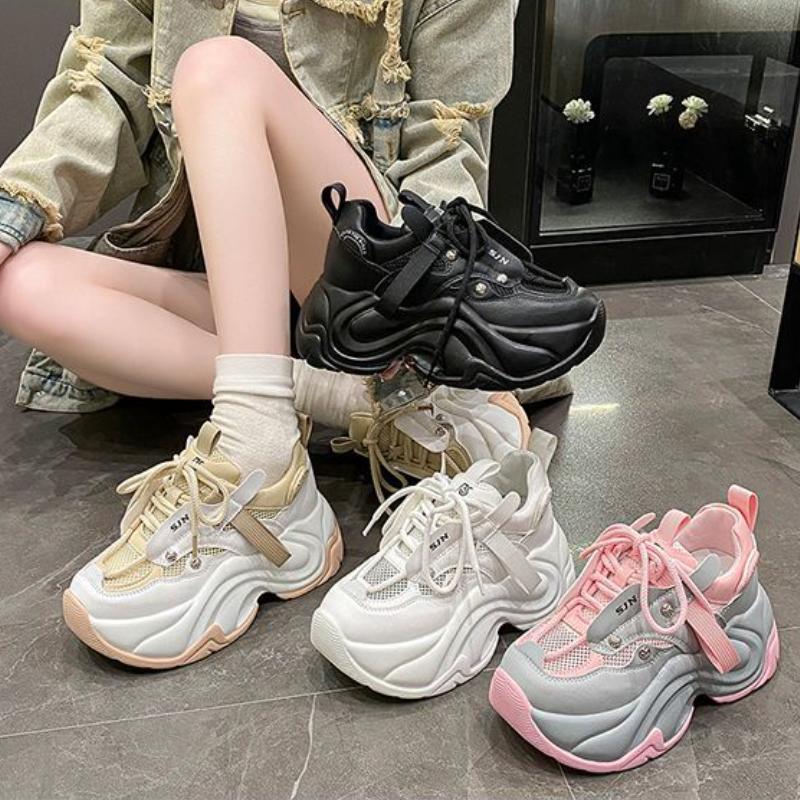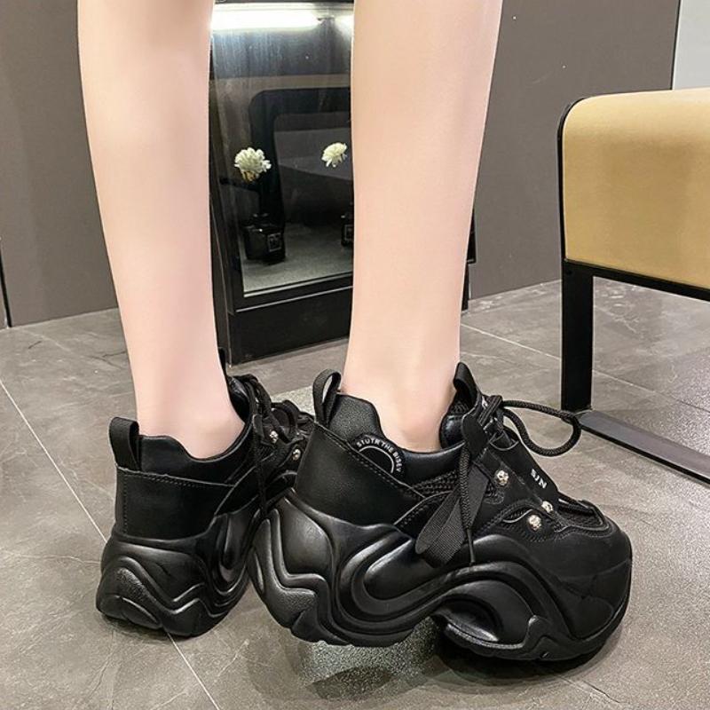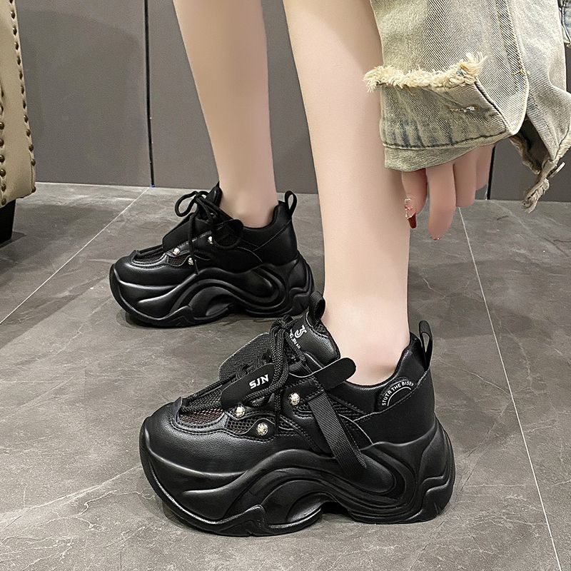 Модные кроссовки на массивном каблуке, женская спортивная обувь на платформе со шнуровкой, женские кожаные кроссовки на высоком каблуке 7 см с толстой подошвой