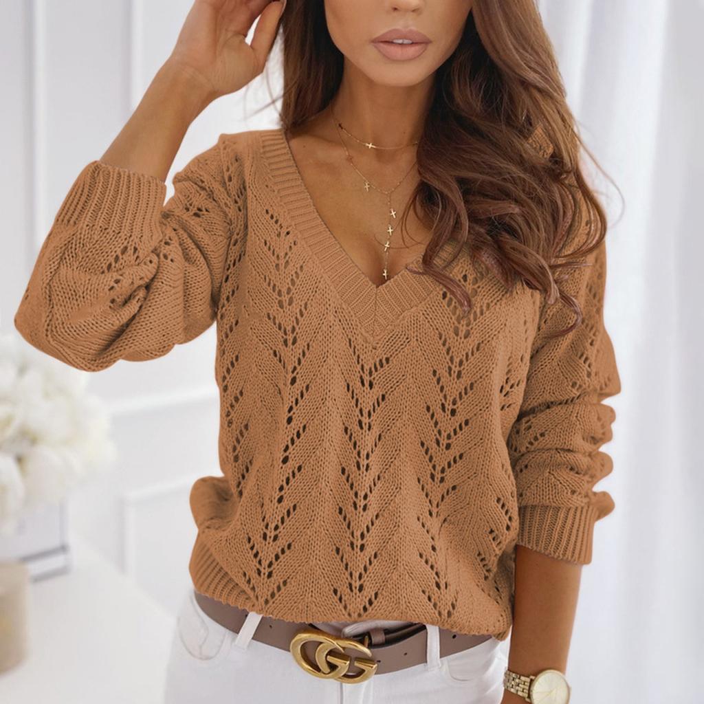 Женский свитер с длинным рукавом с V-образным вырезом - это свободный, легкий, расслабленный пуловер. У него достаточно верха, чтобы спрятаться, и он подходит для любого типа телосложения. Идеально подходит для повседневной повседневной жизни, работы, возвращения в школу, отпускных путешествий. Легко носить с джинсами, шортами или леггинсами. Подходит для весеннего и осеннего показа, более очаровательный и привлекательный.