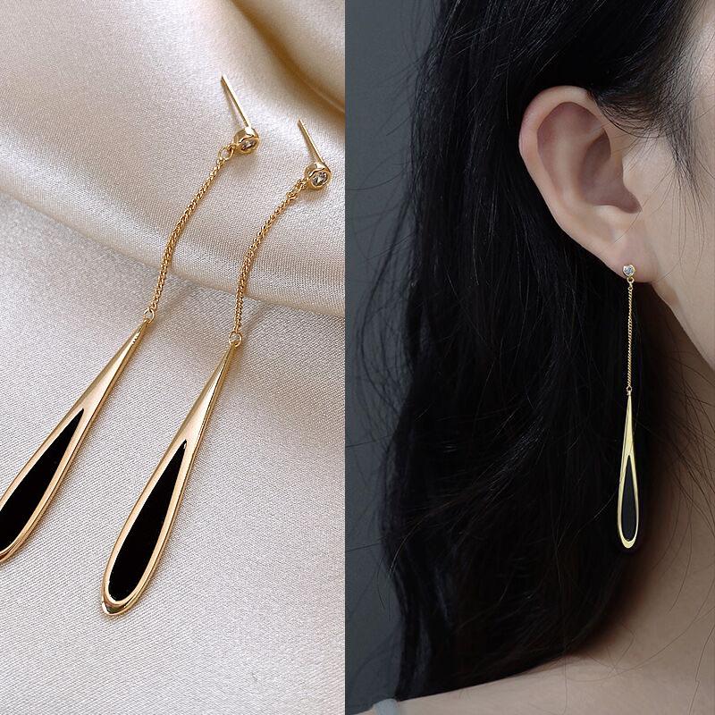 Инкрустированные бриллиантами серьги-капли женские модные очаровательные золотые длинные висячие серьги женские подарки вечерние ювелирные аксессуары
