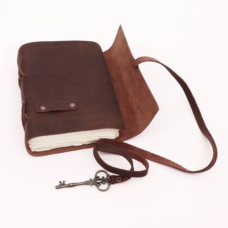 Кожаный блокнот из белой бумаги с декоративным ключом для мужчин и женщин и подарочным дневником коричневого цвета