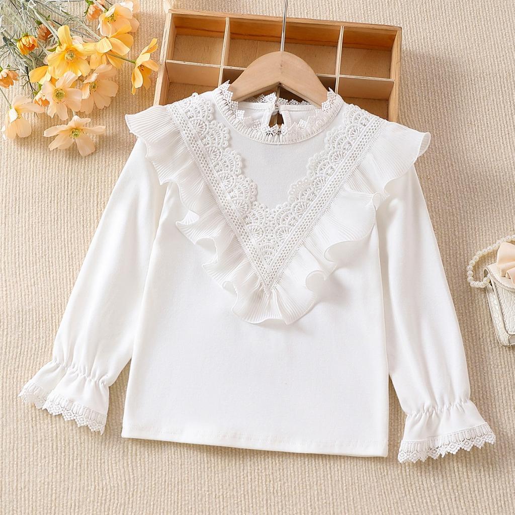 Футболка с длинными рукавами для девочек, весенне-осенняя тонкая детская весенняя нижняя рубашка, белый топ для маленьких девочек