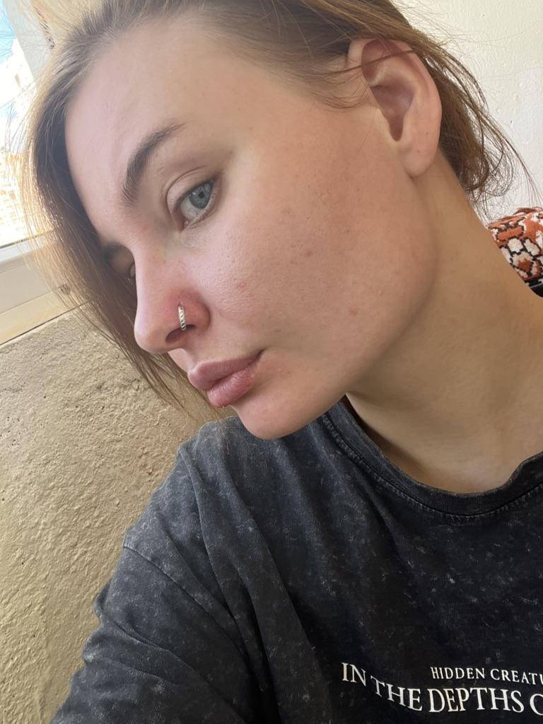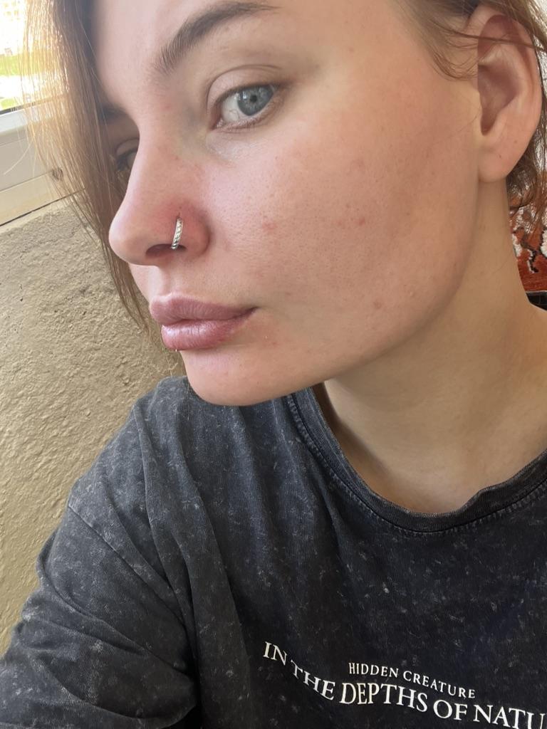 Серьга оказалась больше , плюс очень широкий метал , пришлось прокалывать еще больше отверстие в носу, чтобы вставить