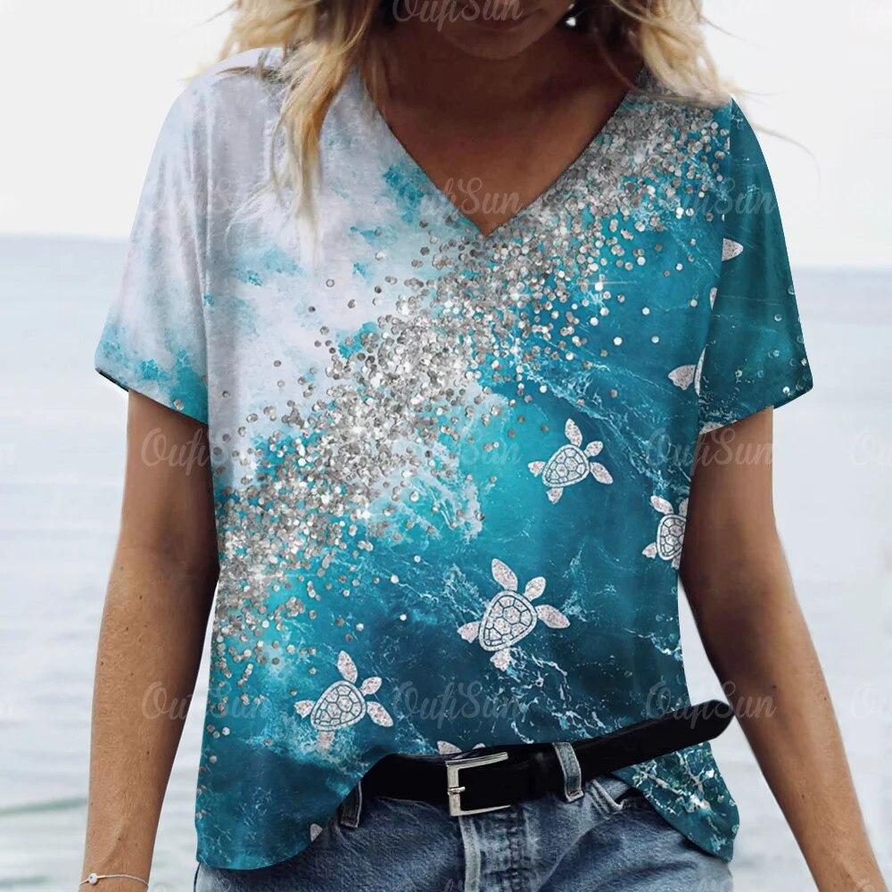 Топ женская футболка с принтом морских животных для женщин футболки большого размера женская трендовая одежда летняя дешевая пляжная футболка