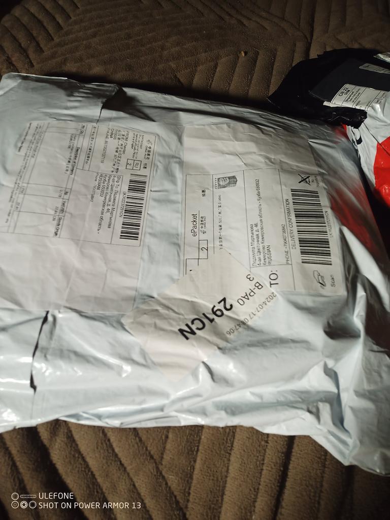 Посылка была объединина из 6 заказов, что радует. А вот сама доставка сильно попортила нервы (движение по России) .Я никак не ожидала , что футболка может быть такого качества:голимая 100% синтетика: это ни хорошо,ни плохо, просто неожиданно .Да на то, что футболка будет спадать на плечо,не рассчитывайте,горловина не широкая и не знаю как кого,а меня это огорчило