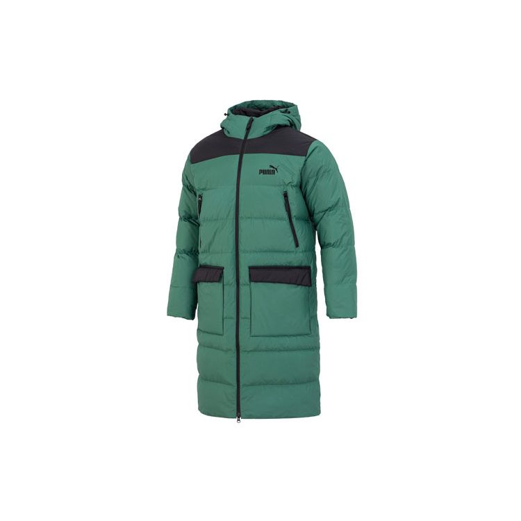 Puma С принтом логотипа, спортивный повседневный теплый ветрозащитный приталенный пуховик с капюшоном и длинными рукавами, мужская верхняя одежда, зеленый 849985-25