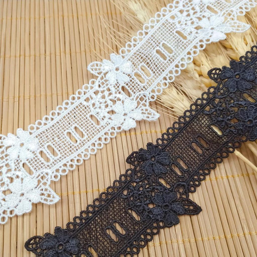 3 ярда/лот, ширина 4,5 см, хорошее качество, белая/черная вышивка, отверстие для вышивки, может пройти лента, цветок, свадебная кружевная бейка, свадебная одежда