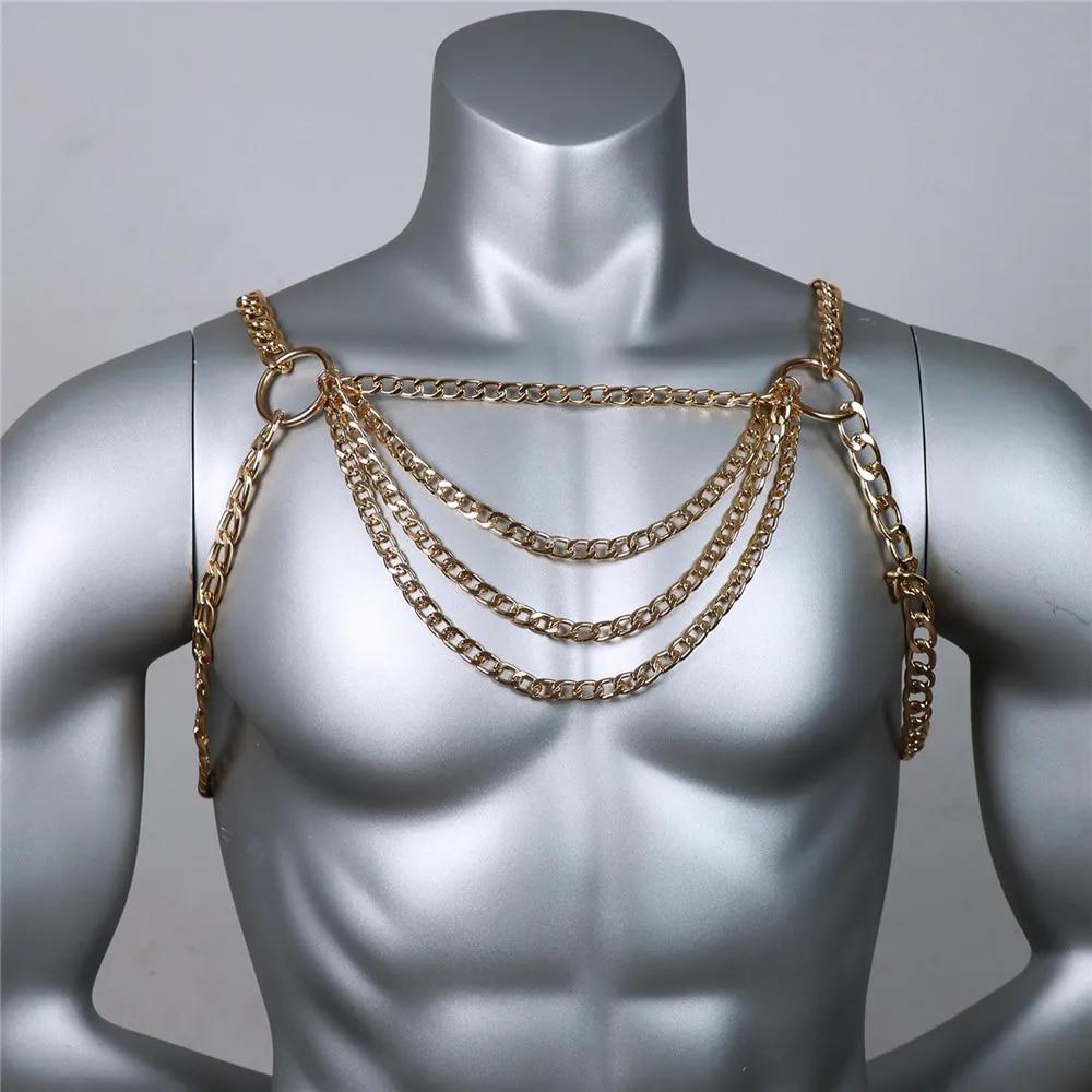 Мужская цепочка на грудь для тела, сексуальные ювелирные изделия в стиле панк, металлические ремни для бикини, праздничные аксессуары, вечерние аксессуары для вечеринки, Rave Goth, сексуальная цепочка для живота, подарок — купить товар онлайн с бесплатной доставкой по всему миру!