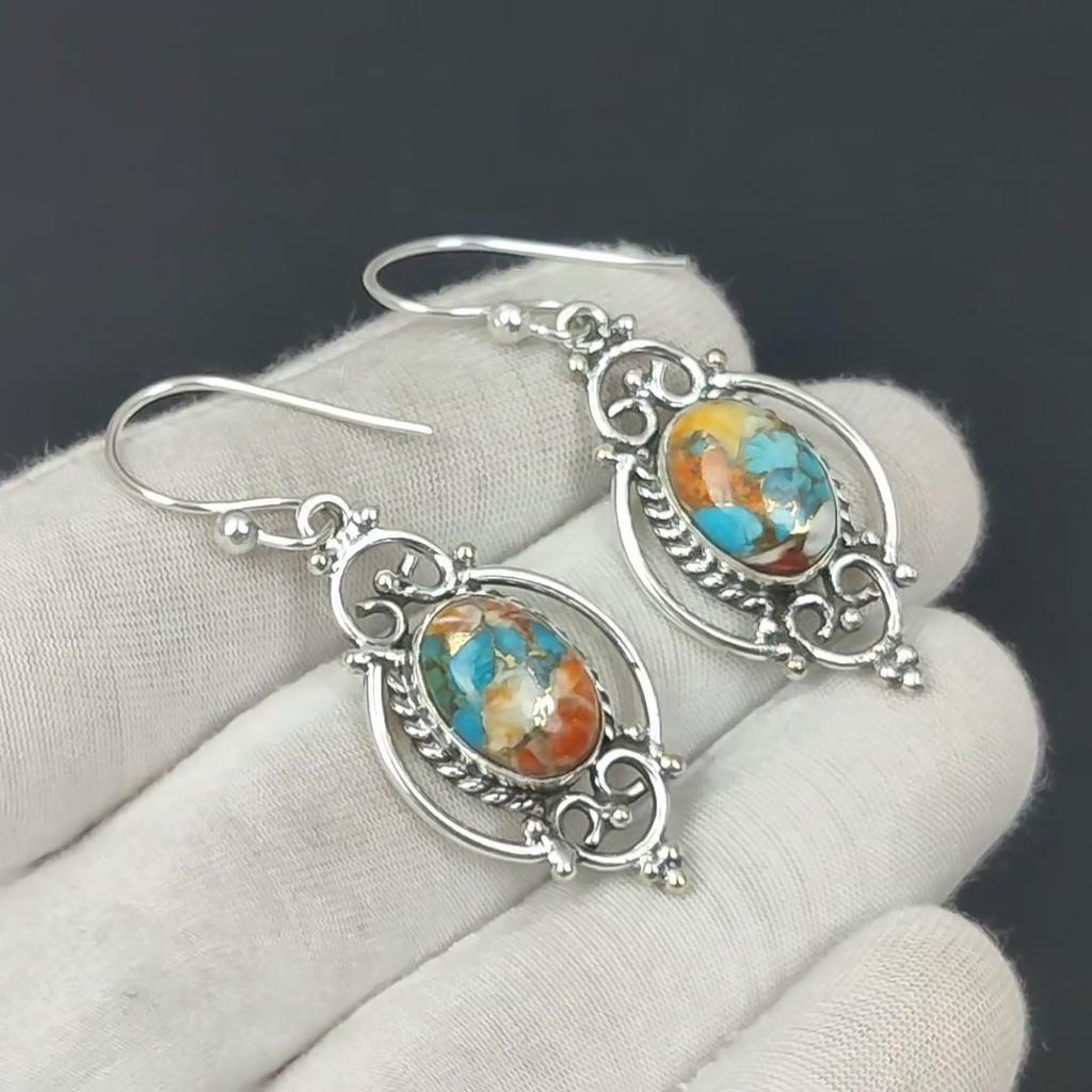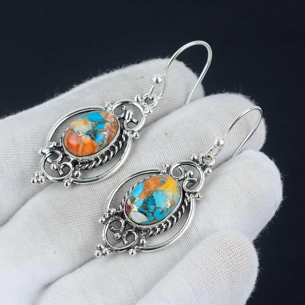 Серьги с оранжевыми колючими устрицами, серьги с овальными камнями из оранжевых колючих устриц, серьги из стерлингового серебра 925 пробы, серьги с колючими драгоценными камнями, серьги с подвесками