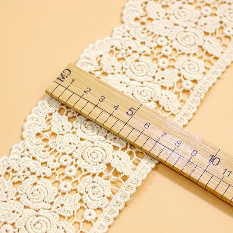 Широкая ткань 7,5 см, 2 ярда/лот, бежевая хлопковая кружевная бейка, утолщенная венецианская роза, необычная водорастворимая кружевная лента с отделкой, аксессуары