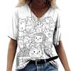 Женская футболка с рисунком котенка в стиле аниме, одежда с принтом для девочек, блузка с v-образным вырезом, пуловер в стиле Харадзюку, летние футболки большого размера с короткими рукавами
