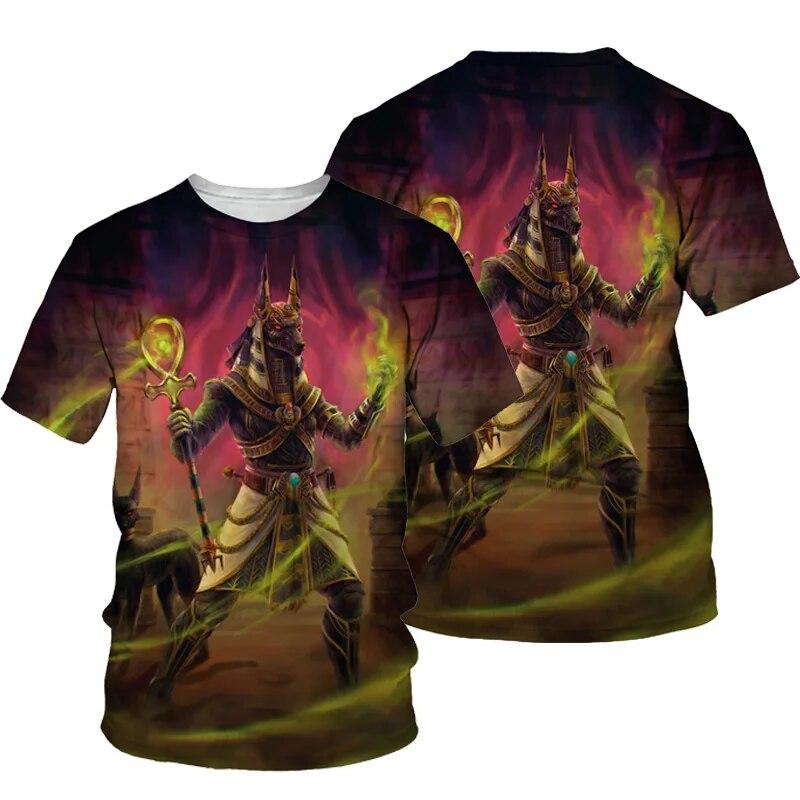 Летняя футболка унисекс с 3D принтом Anubis, футболка с коротким рукавом и круглым вырезом, топ в древнем египетском стиле, мужская модная повседневная футболка, большая свободная футболка, топ