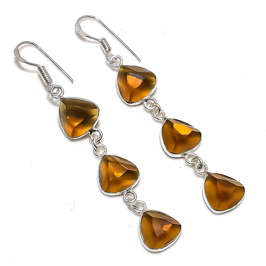 Ювелирные серьги из стерлингового серебра 925 пробы с натуральным дымчатым топазом 2,56 дюйма D6a99