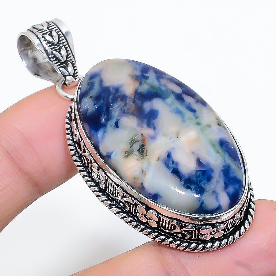 Подвеска из стерлингового серебра 925 пробы с натуральным камнем содалитом ручной работы 2,21 дюйма p0K27 — купить товар онлайн с бесплатной доставкой до всему миру!