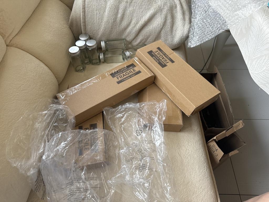 Пришло три подставки под бутылочки вместо четырех! Я очень сильно разочарована(( так долго ждала этот комплект, а в итоге - обман продавца!!!! Вместо порядка и красоты получила полупустую полку.