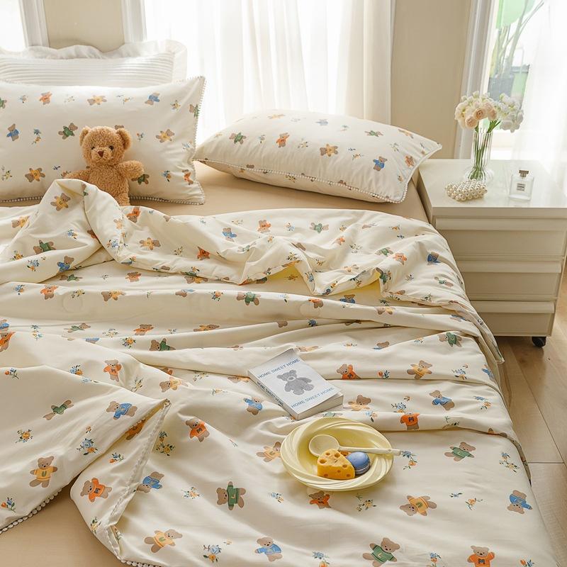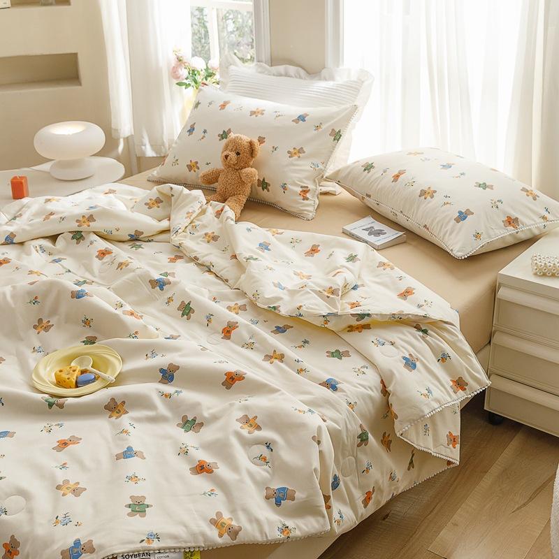 Новое детское хлопковое летнее прохладное одеяло с героями мультфильмов, комплект из четырех предметов, одеяло из соевого волокна, моющееся двойное одеяло с кондиционером