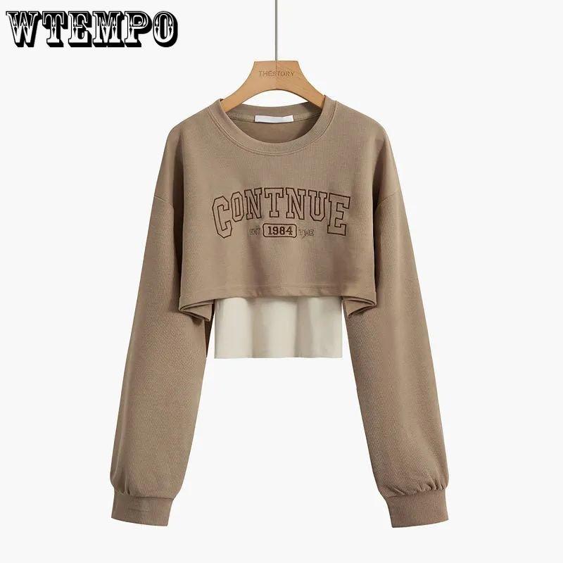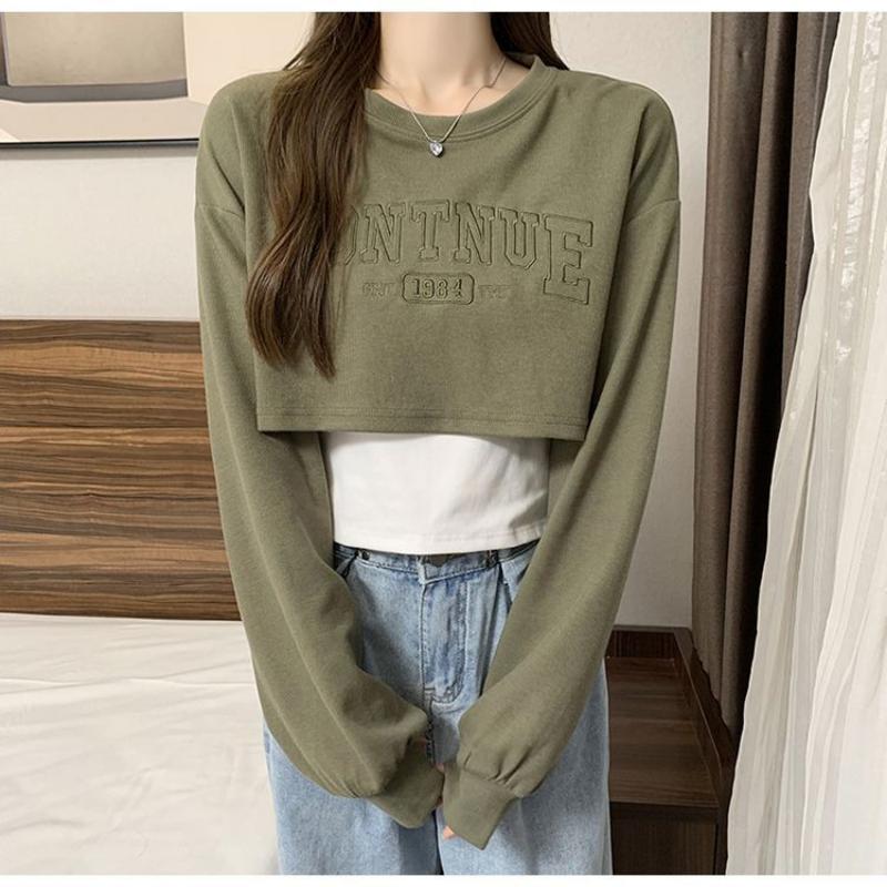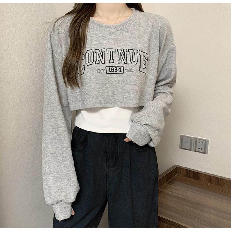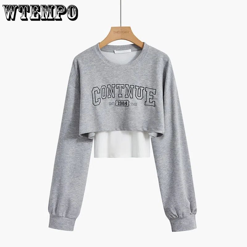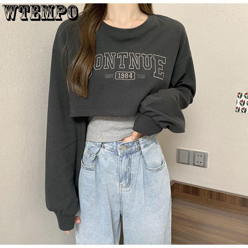 Свободный короткий топ, женский комплект из двух предметов, футболка с открытым пупком и длинными рукавами, с принтом Y2k, Harajuku, новая мода, весна-осень