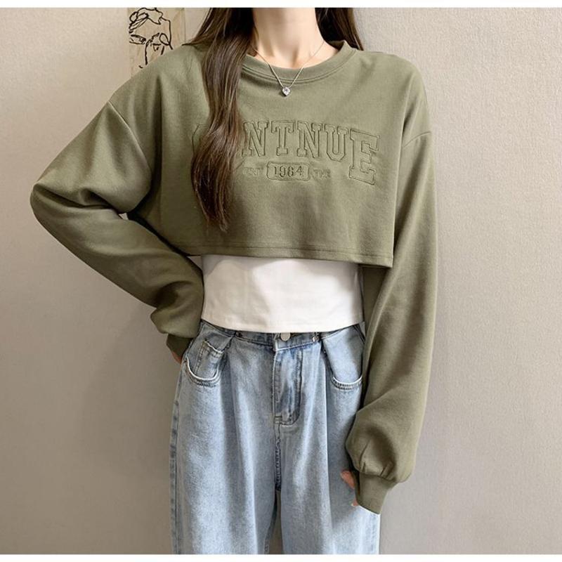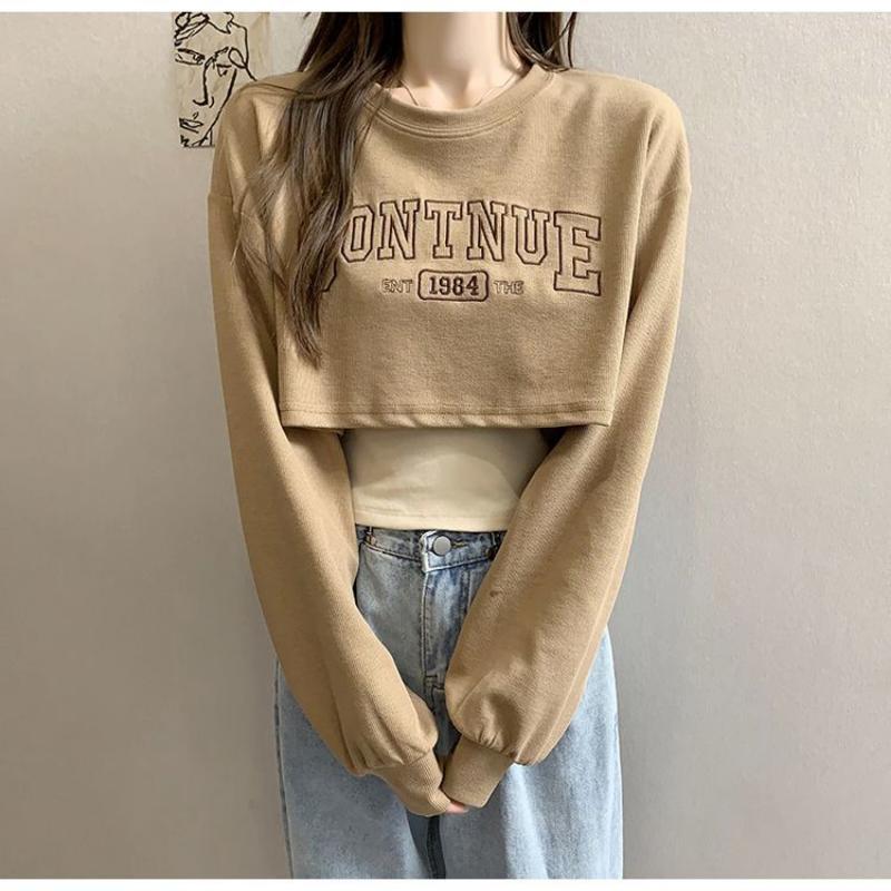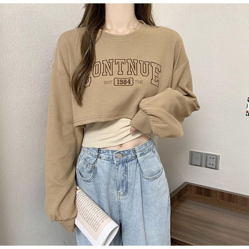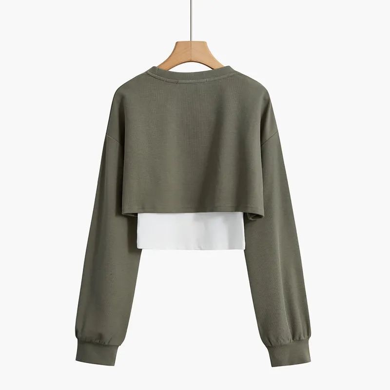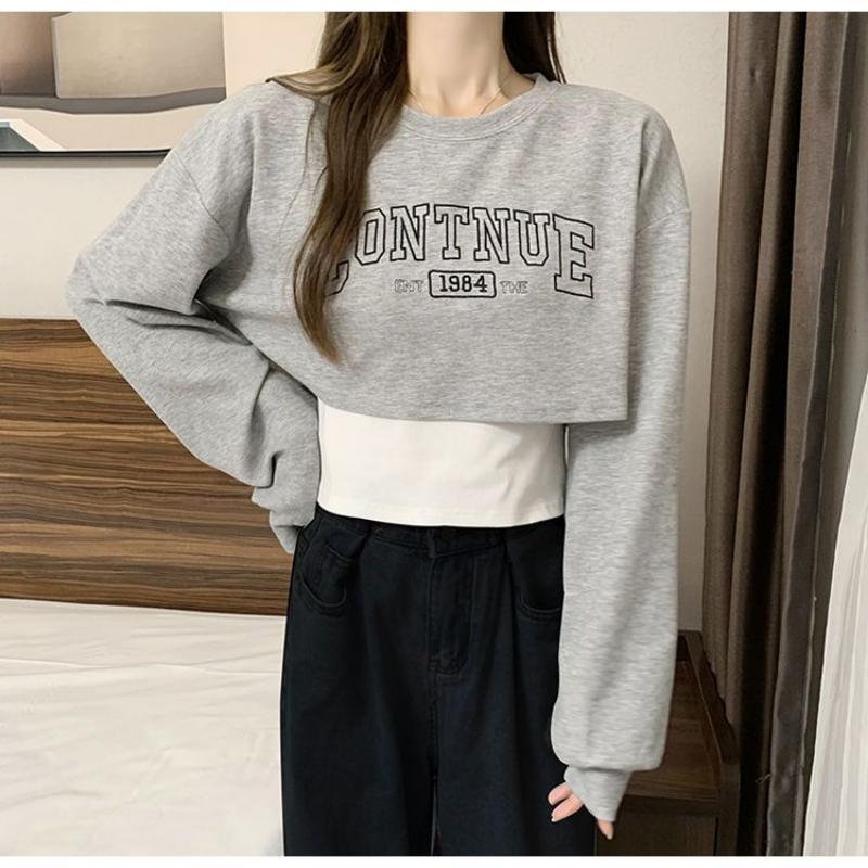Свободный короткий топ, женский комплект из двух предметов, футболка с открытым пупком и длинными рукавами, с принтом Y2k, Harajuku, новая мода, весна-осень