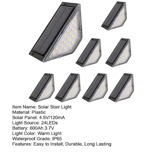 Осветите лестницу в саду и во внутреннем дворике с помощью нашего солнечного лестничного светильника с 24 яркими светодиодами.