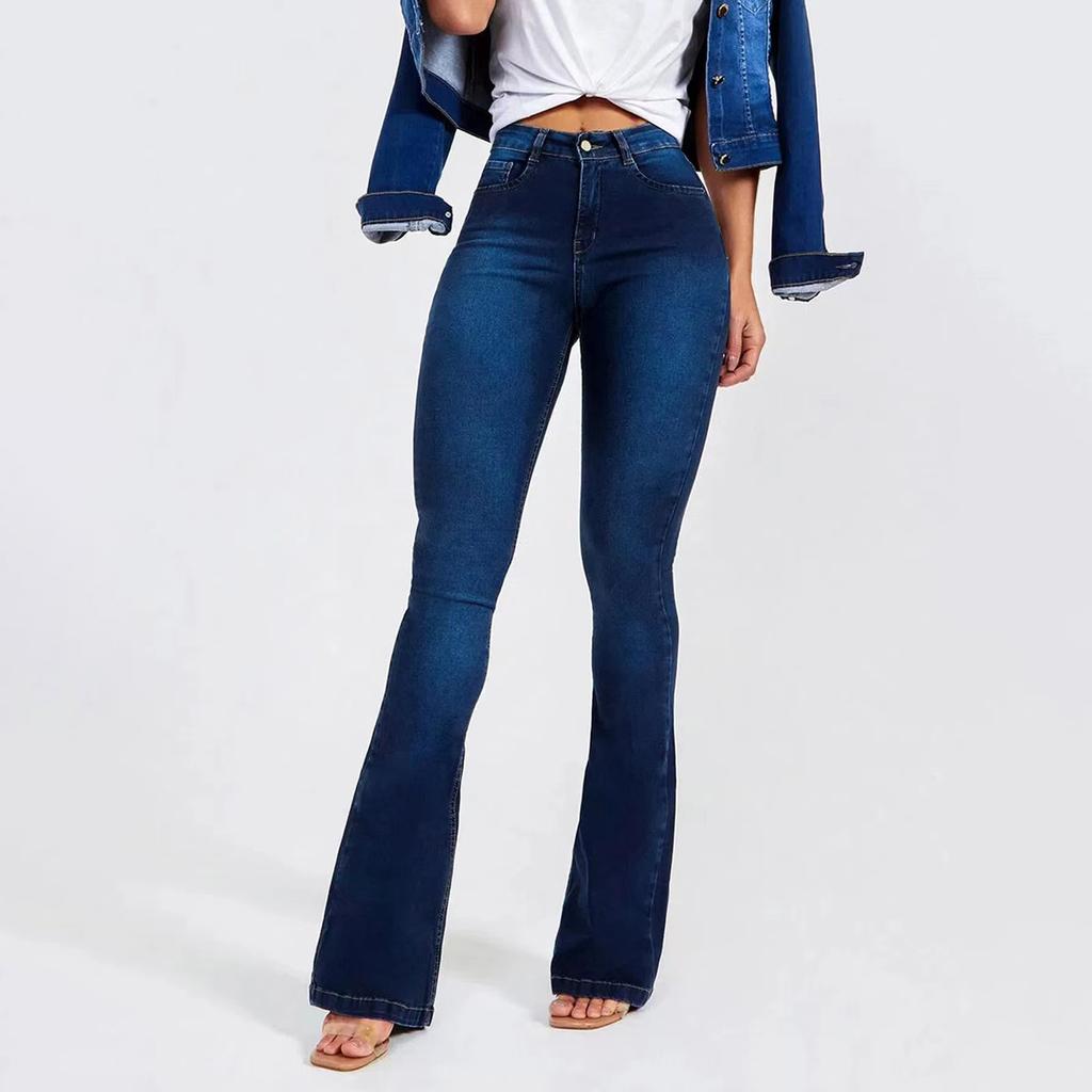 Весенние и летние брюки, джинсы с высокой талией для женщин, модные повседневные узкие джинсовые расклешенные брюки