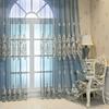 1 панельная перегородка, прозрачная занавеска, роскошная синяя прозрачная занавеска с вышивкой, кружевная фильтрующая занавеска, винтажная цветочная занавеска для окон для гостиной