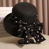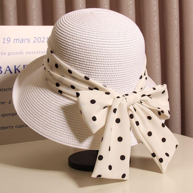 Соломенная шляпа от солнца в горошек с бантом и широкими полями, повседневные солнцезащитные шляпы, стильная дышащая складная пляжная шляпа для женщин