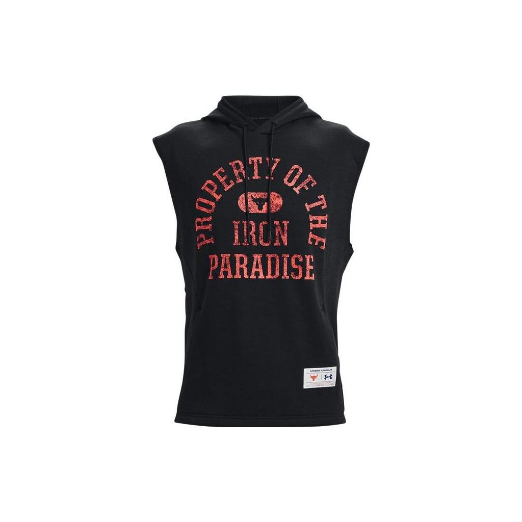 Under Armour Project Rock Графический принт Флисовая толстовка без рукавов с капюшоном Баскетбольный жилет Мужские топы Черный 1367034-001