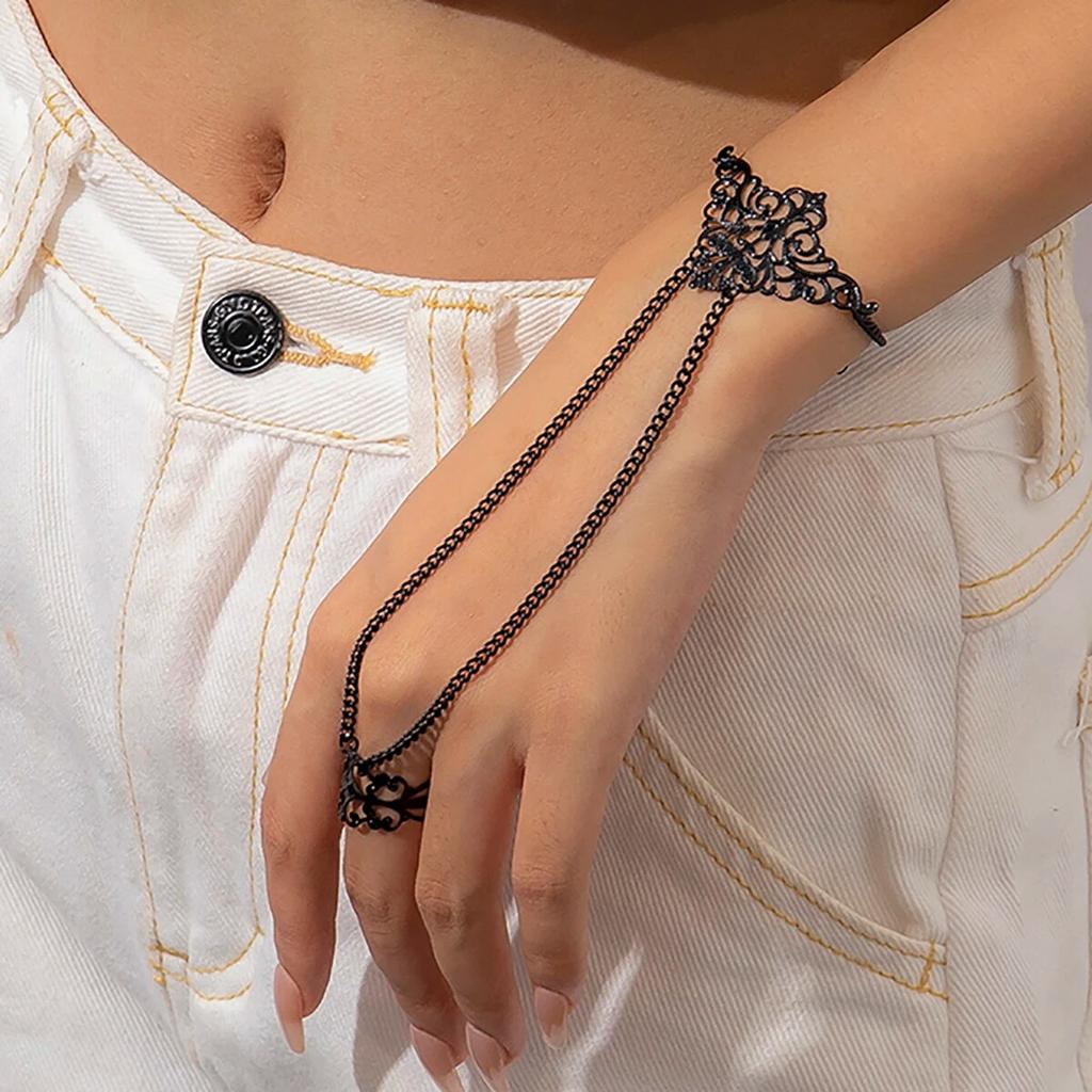 Salircon панк геометрический вырез узор черная цепочка браслет на запястье кольцо для женщин готический темный браслет на Хэллоуин праздничные украшения