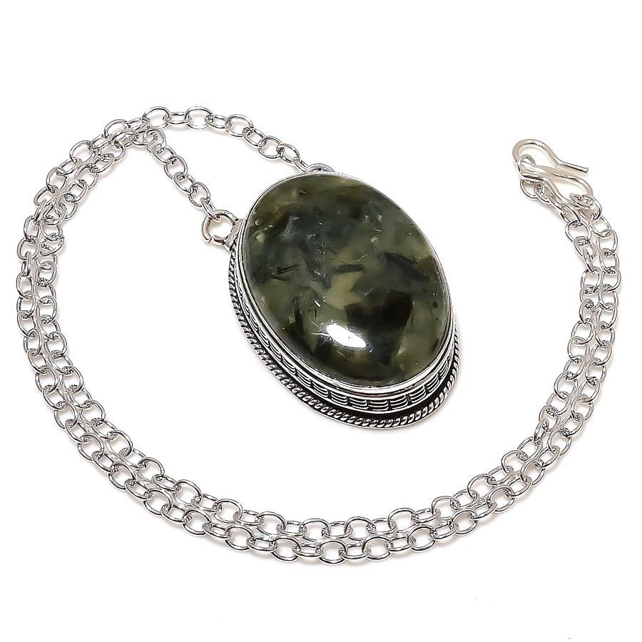 Подарочное ожерелье ручной работы из стерлингового серебра 925 пробы с натуральным драгоценным камнем пренитом 20 дюймов H0K67