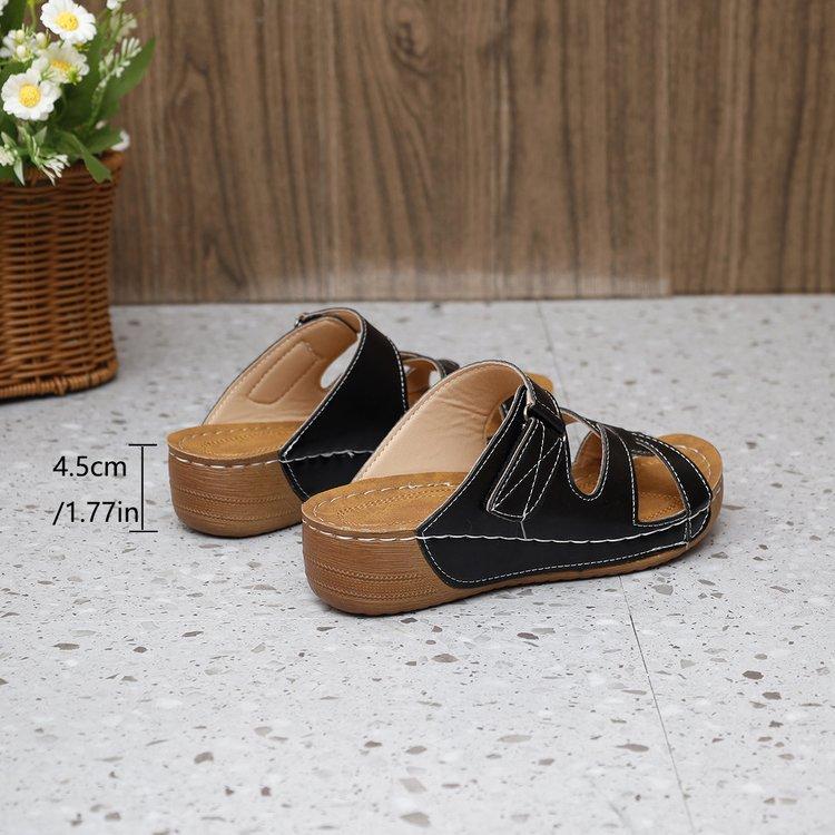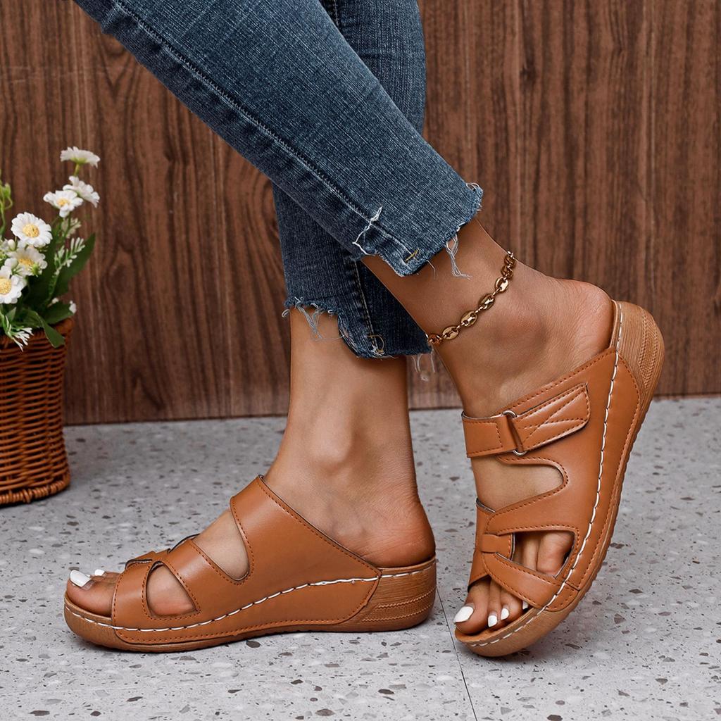 2024 летние новые женские римские полые тапочки для отдыха в автомобиле, повседневные тапочки из мягкой кожи на наклонном каблуке