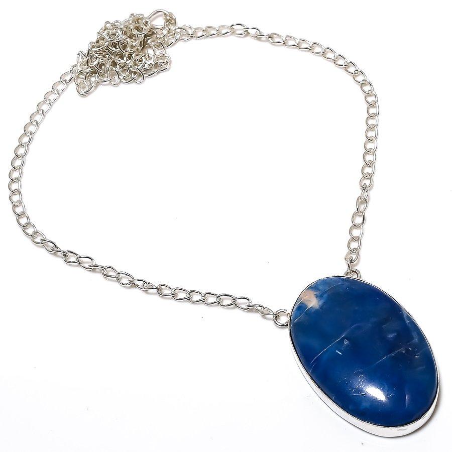 Подарочное ожерелье ручной работы из стерлингового серебра 925 пробы с натуральным драгоценным камнем содалитом 18 дюймов S7W86