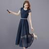 Летние корейские модные длинные шикарные вечерние платья, винтажная синяя одежда для женщин, платье макси, шифоновое вечерние платье с цветочным принтом, элегантное бохо