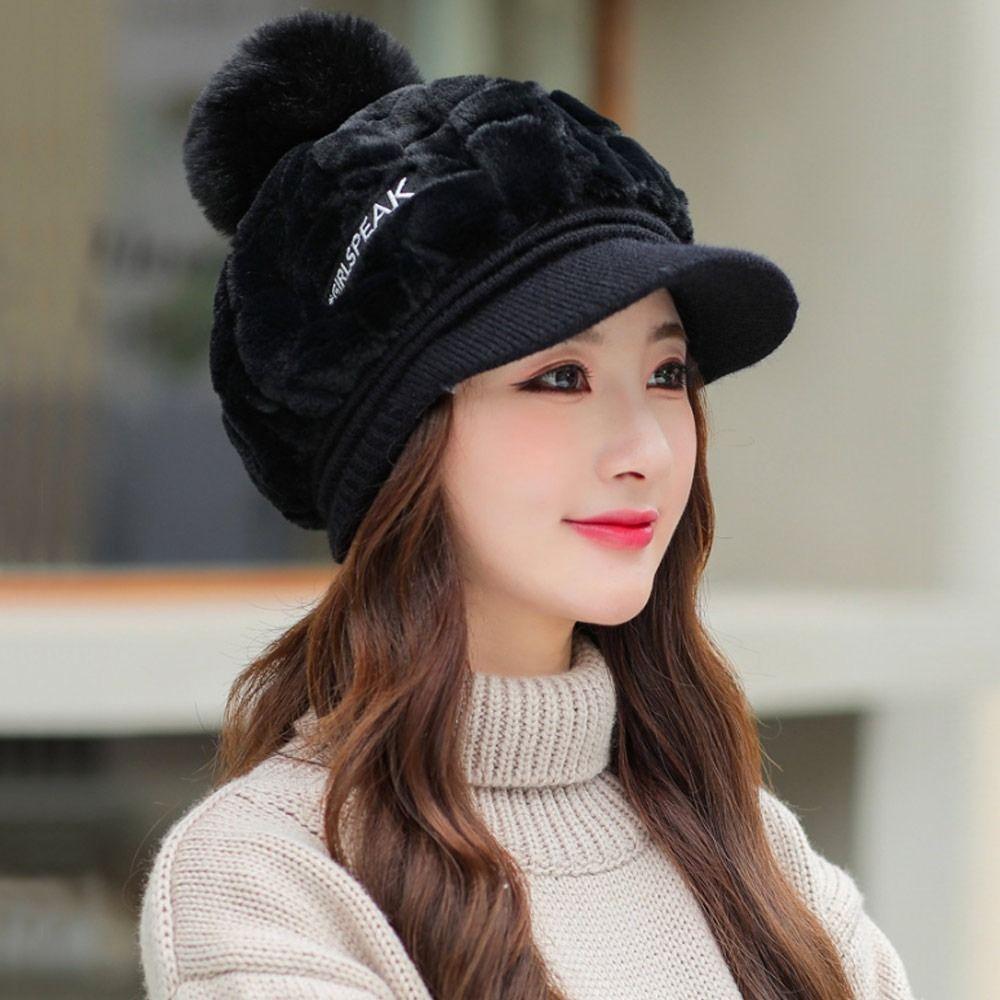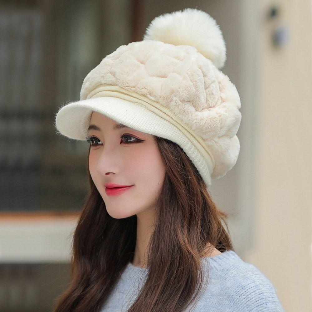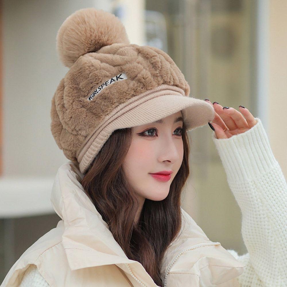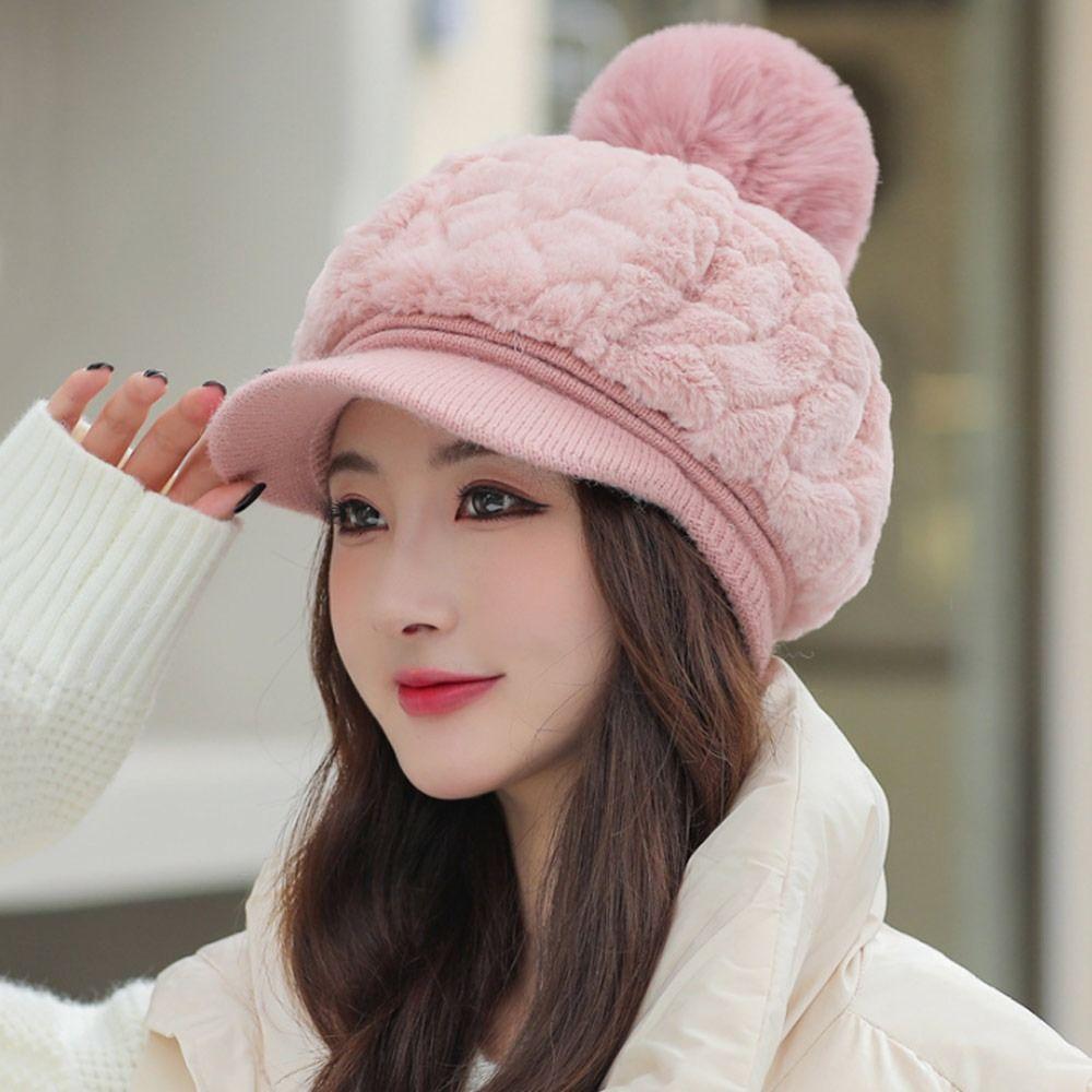 Женская утепленная шапка с мехом для девочек, плюшевая шапка с козырьком и козырьком