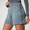 Летние женские модные простые однотонные брюки с карманами, повседневные шорты из эластичного твила с подъемом бедер