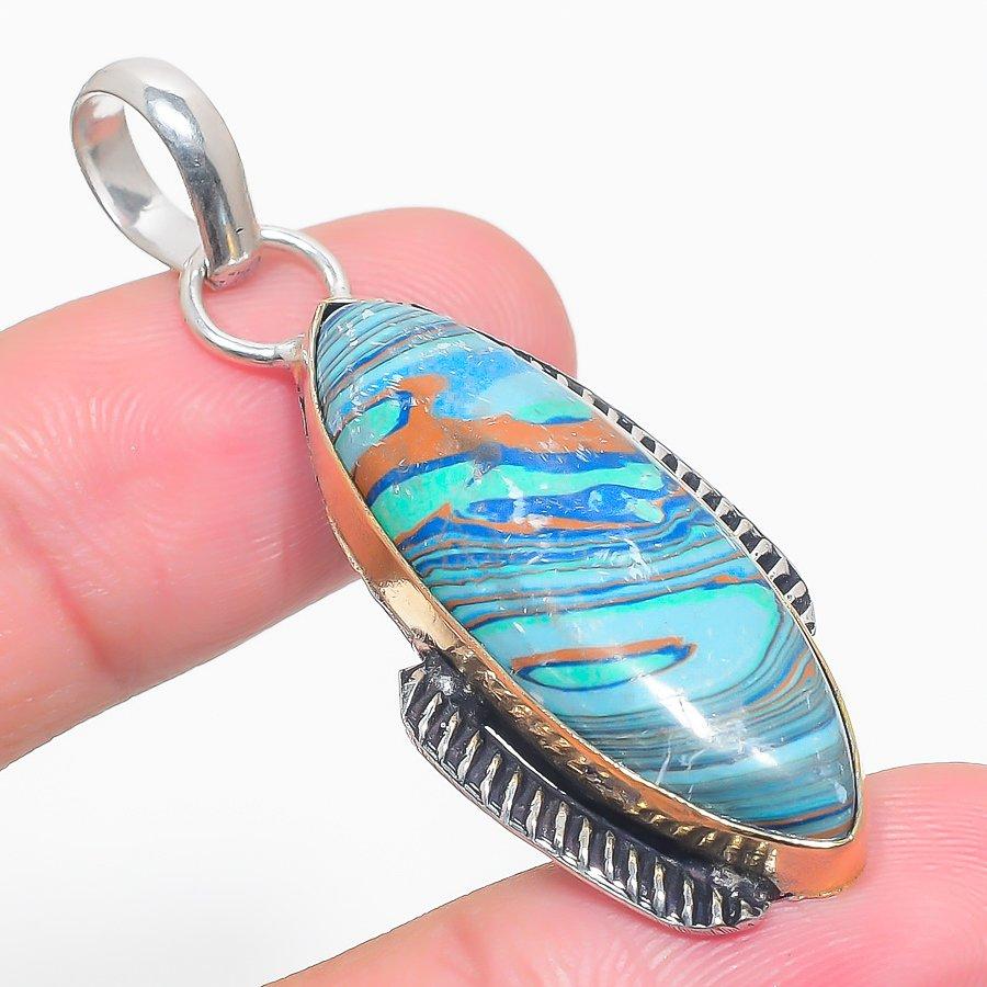 Подвеска из серебра 925 пробы с натуральным драгоценным камнем Calsilica двухцветная 2,17 дюйма
