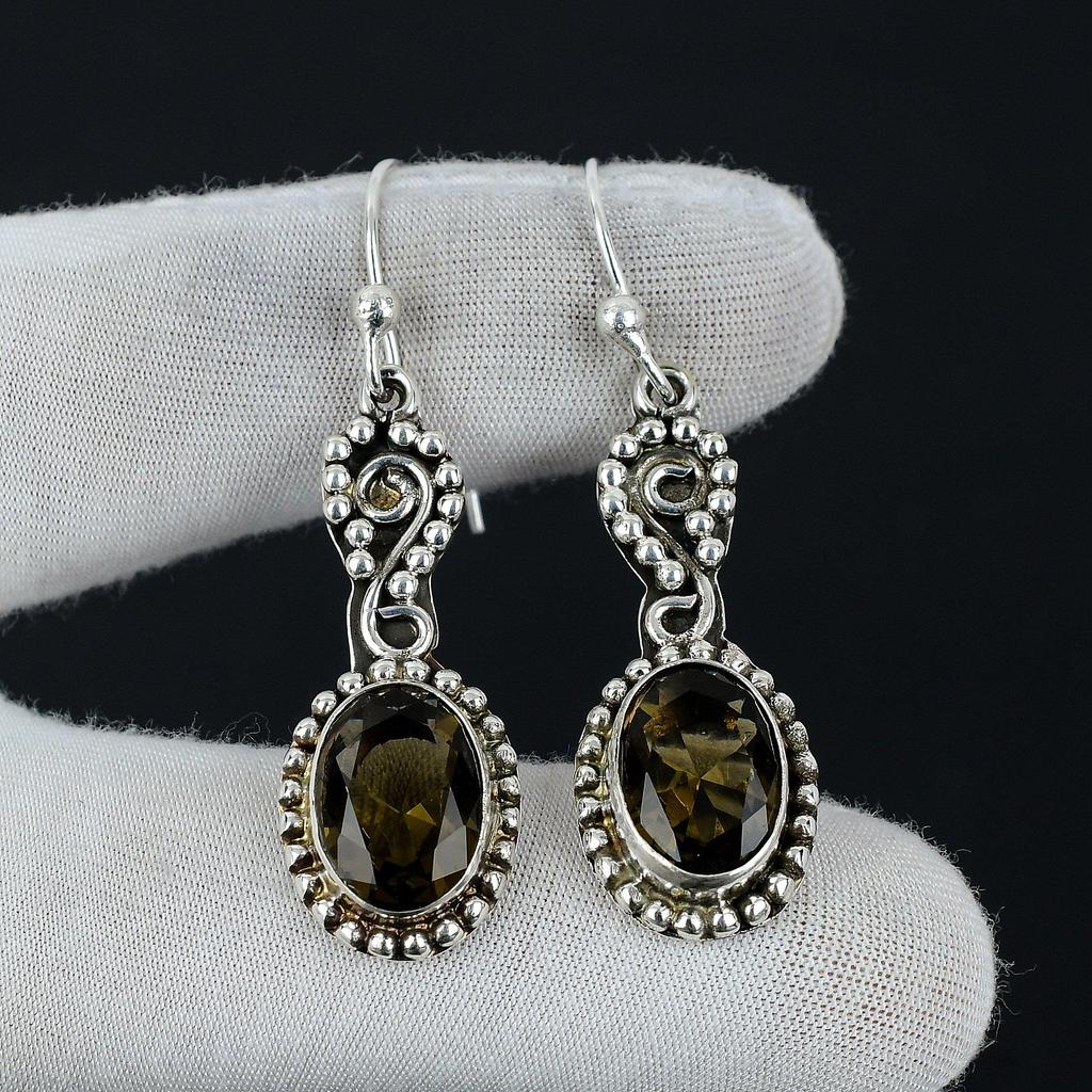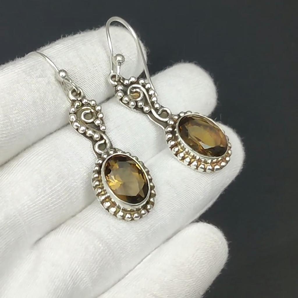Серьги с дымчатым топазом, серьги ручной работы, серьги из стерлингового серебра 925 пробы, ювелирные серьги с дымчатым топазом, подарок для нее, серьги с подвесками для женщин
