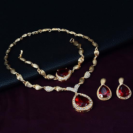 Женщины Формальная вечеринка Waterdrop Цирконий Ожерелье Серьги Браслет Кольцо US6-9