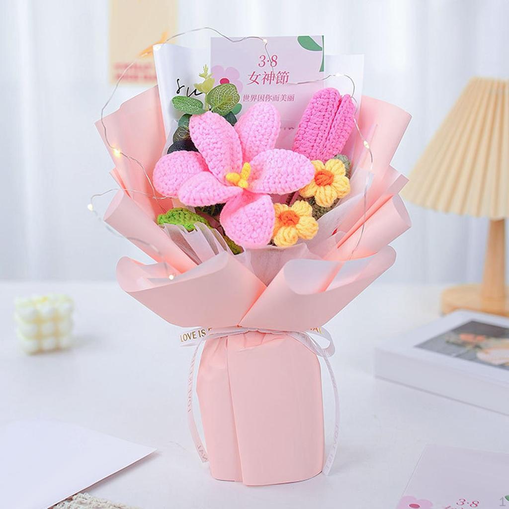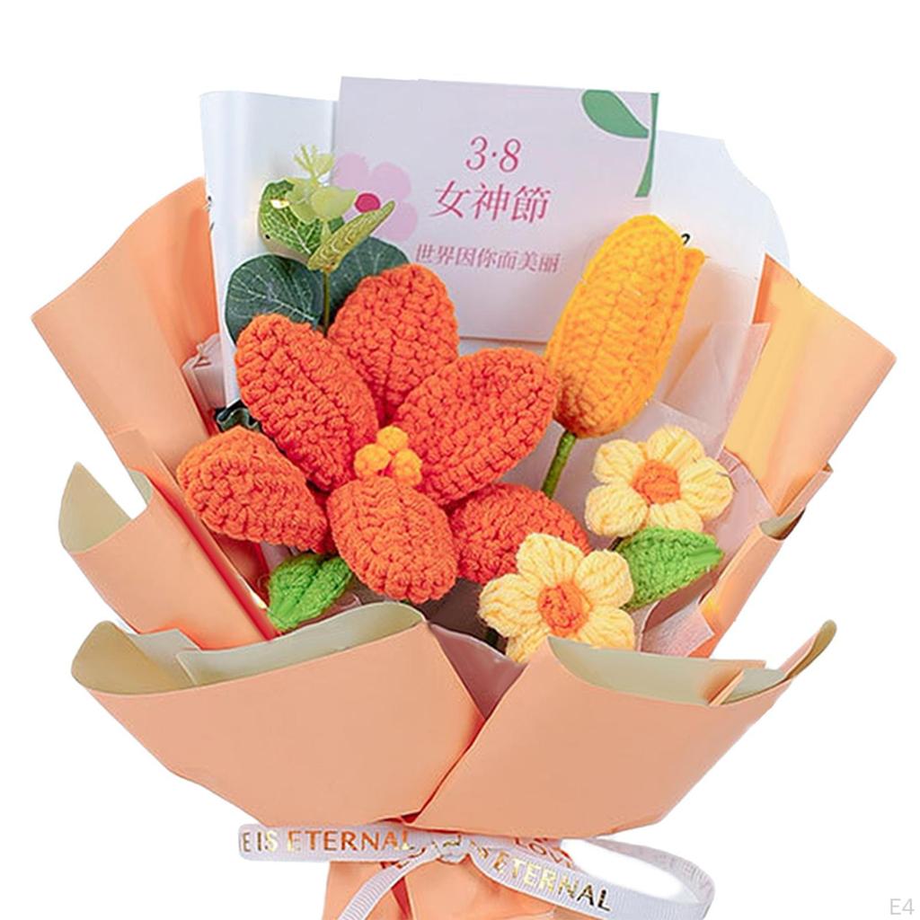 Завершенный букет цветов крючком Искусственный вязаный цветок Ромашка Мастерство изготовления