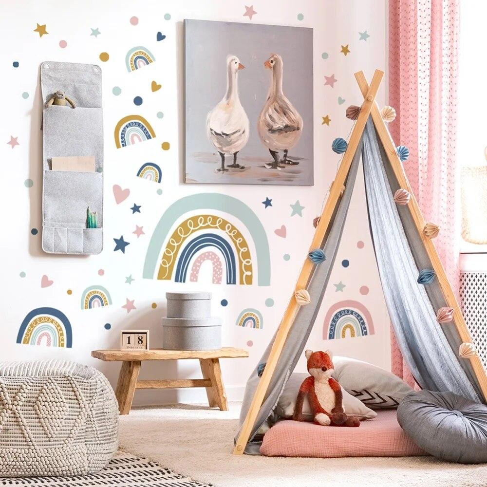 Наклейки на стену с изображением радуги и звезды для детской комнаты, детской комнаты, для девочек, спальни, съемные наклейки на стены из ПВХ для украшения дома