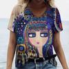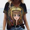 Летний модный топ для женщин 3d футболки с рисунком лица для девочек Harajuku красочные футболки с v-образным вырезом и короткими рукавами с короткими рукавами одежда оверсайз