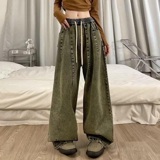 Удобная всесезонная одежда: Эти широкие брюки, изготовленные из высокоэластичного денима, приятны для кожи и удобны в ношении в любое время года, обеспечивая идеальную посадку в любое время.