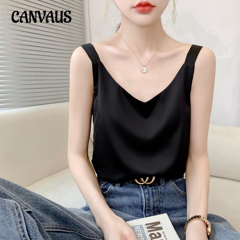 Весенне-летний шелковый жилет-бретелька для женщин, тонкие короткие топы с v-образным вырезом и внутренней отделкой — купить товар онлайн с бесплатной доставкой по всему миру!