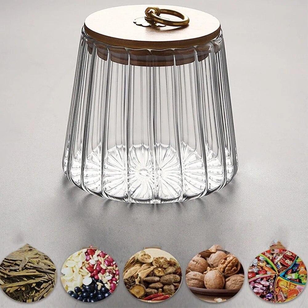 Контейнер для пищевых продуктов Кухонные бутылки для хранения Банка Стеклянная герметичная канистра Зерна Чай Кофейные зерна Зерна Конфеты Банки Контейнеры с деревянной крышкой
