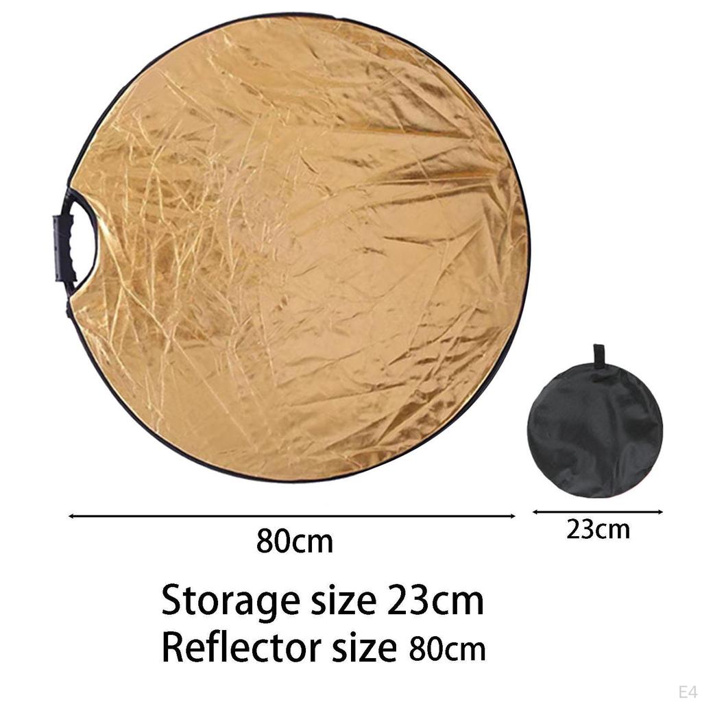 - 【Отражатель для фотографии】: Светоотражатель для фотографии имеет две отражающие поверхности: золотая поверхность может сделать изображение теплее, а серебряная поверхность может сделать изображение ярче.