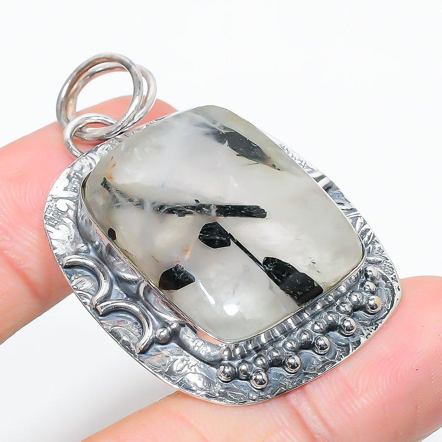 Подвеска ручной работы из стерлингового серебра 925 пробы с натуральным черным рутилом 2,01 дюйма