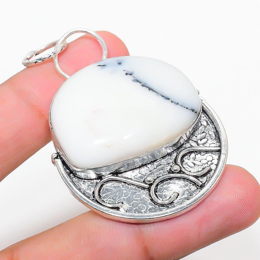 Подарочный кулон из стерлингового серебра 925 пробы с натуральным дендритовым опалом диаметром 2,40 дюйма