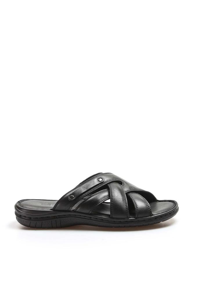 Черные классические вязаные мужские тапочки из натуральной кожи внутри и снаружи