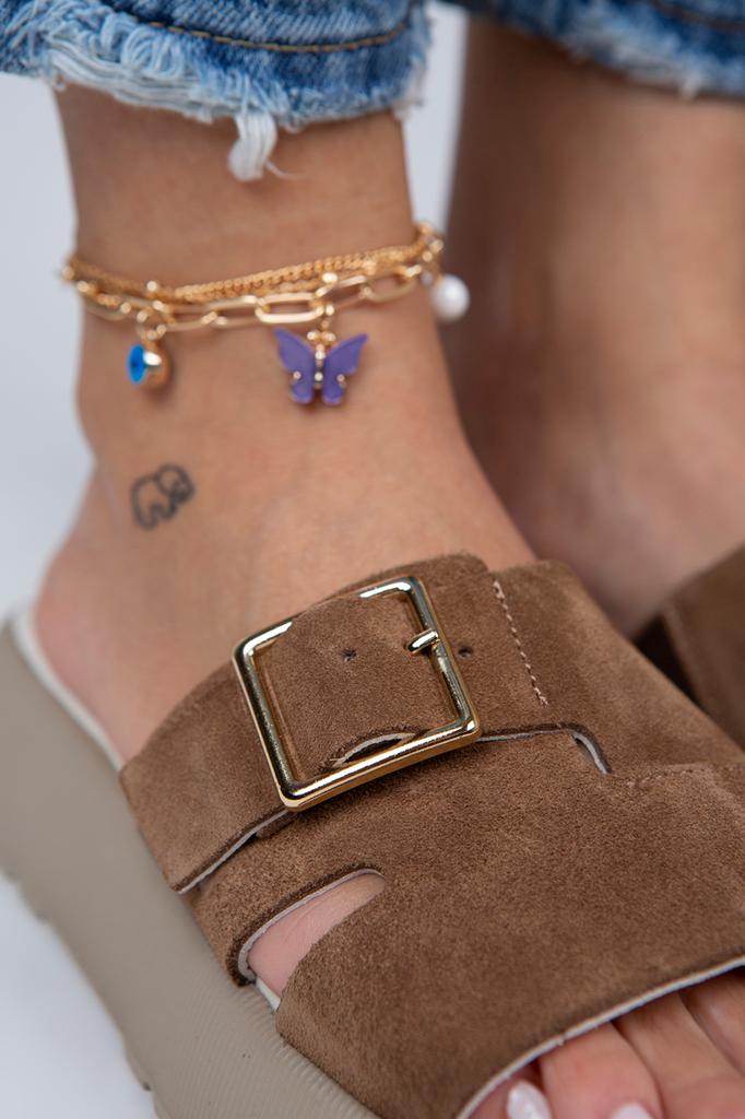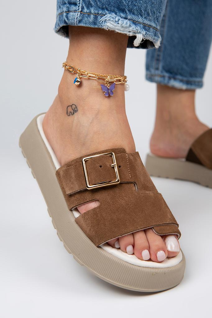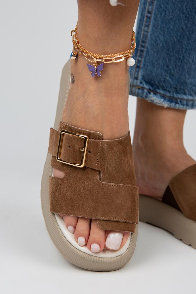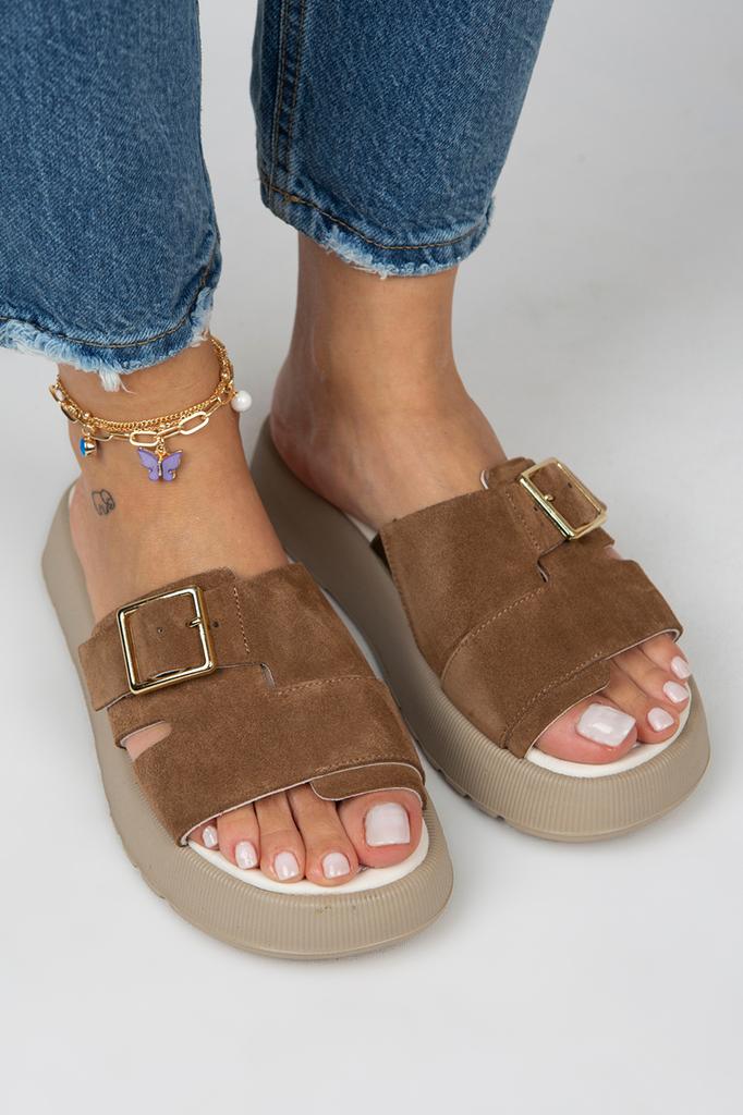 Женские однополосные коричневые тапочки из натуральной кожи