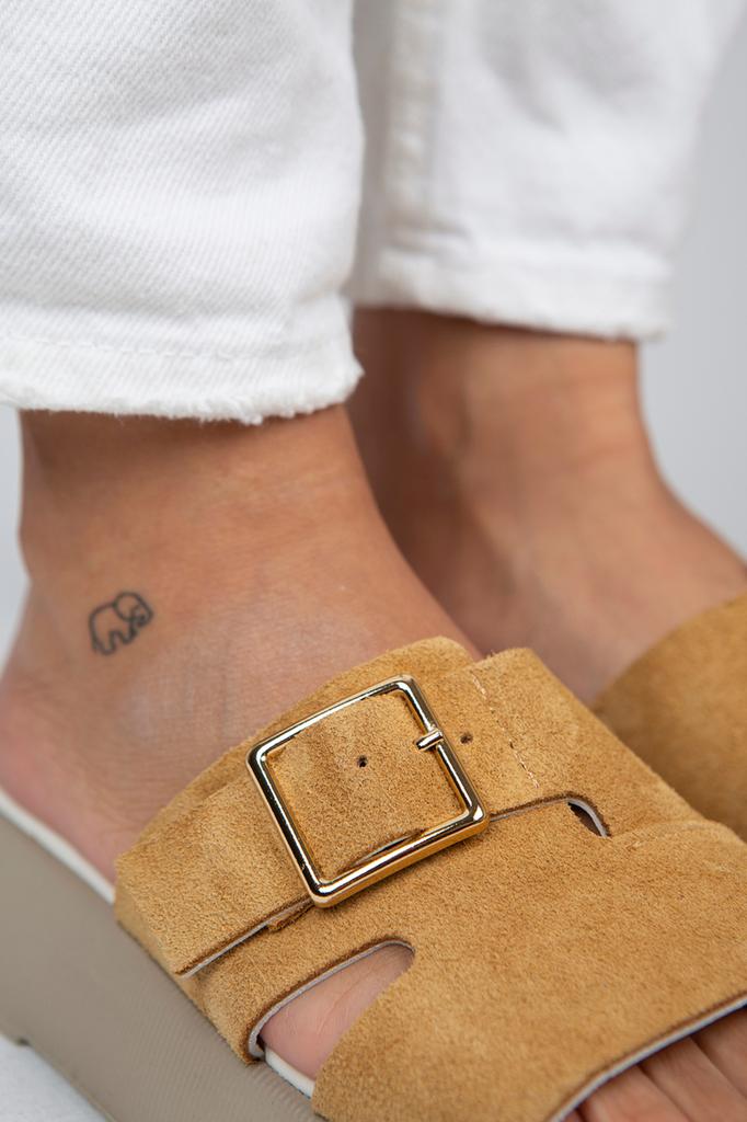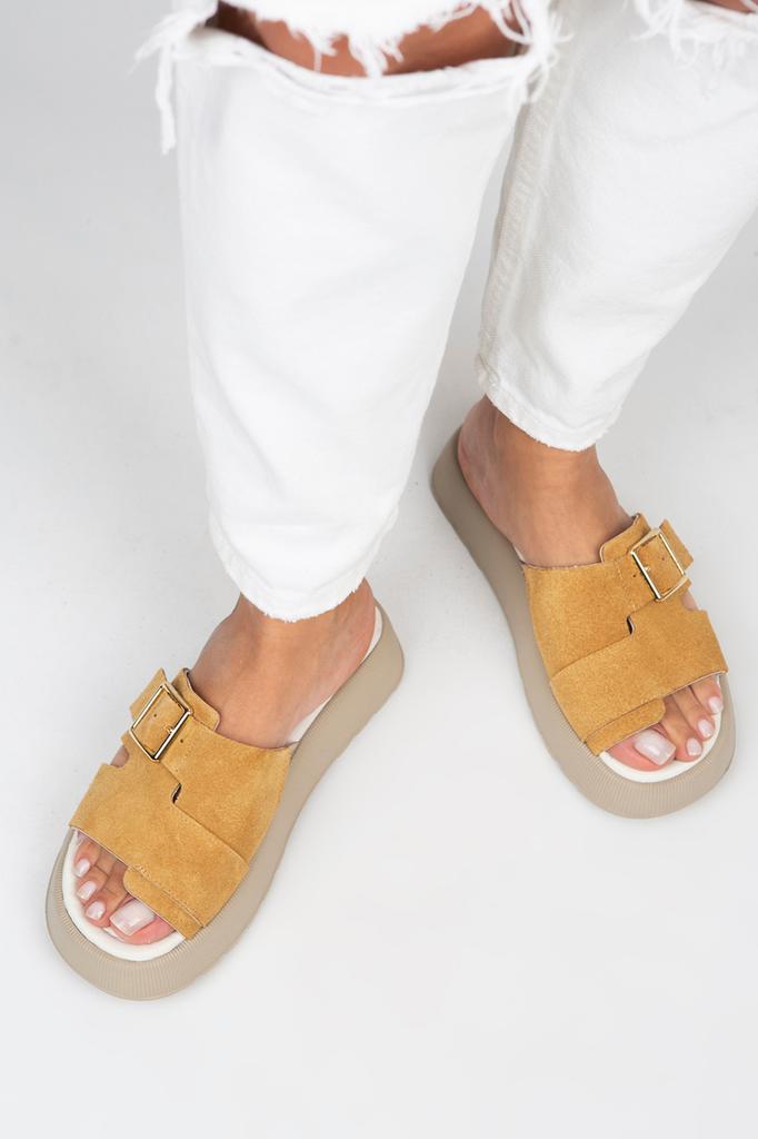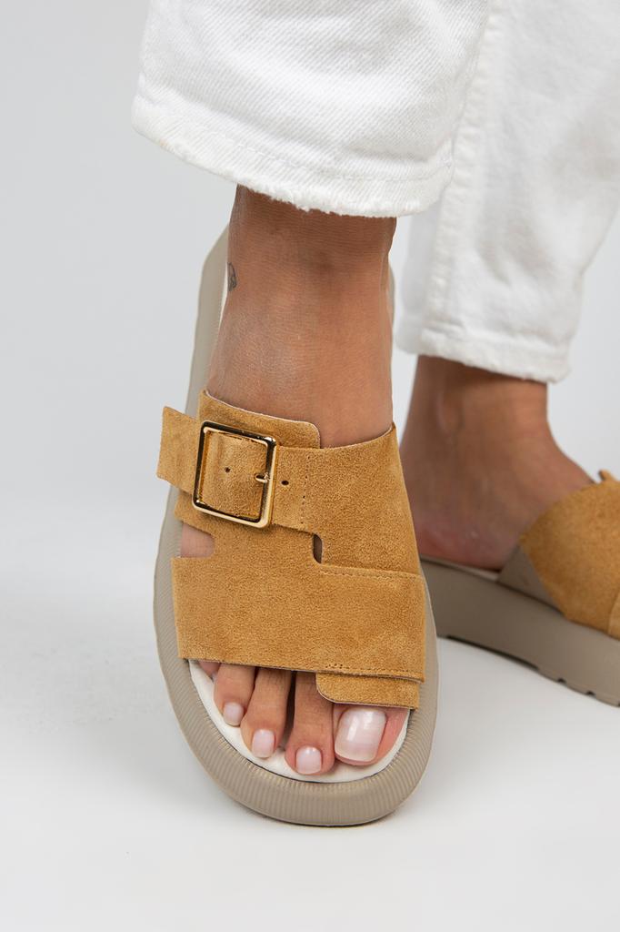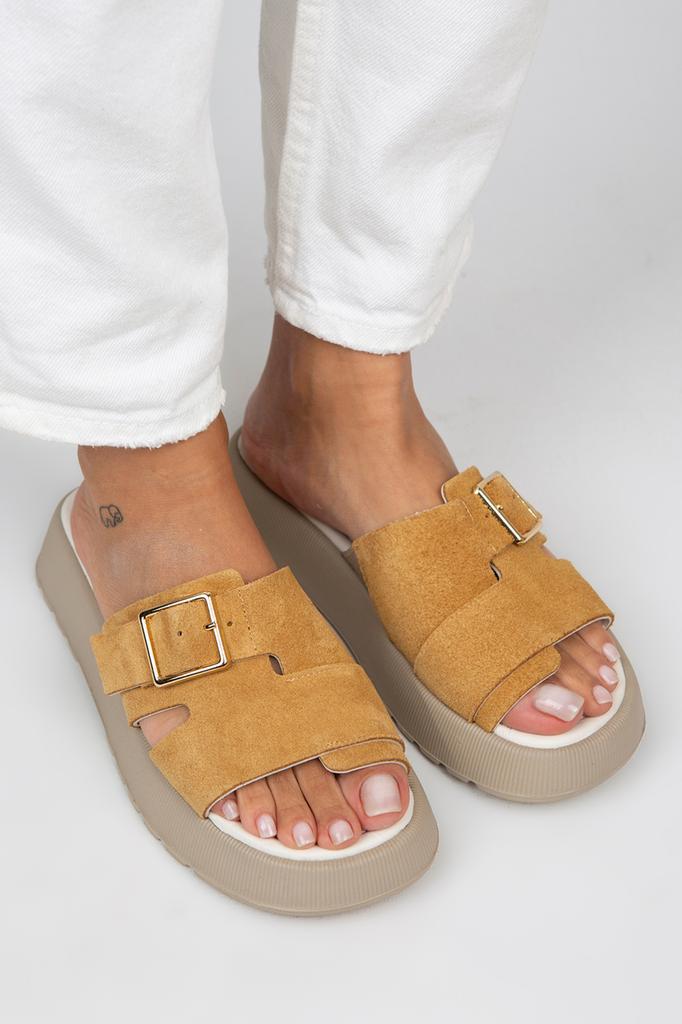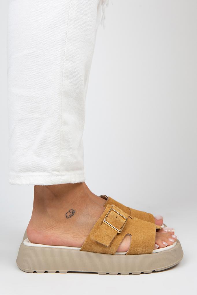 Женские однополосные коричневые тапочки из натуральной кожи